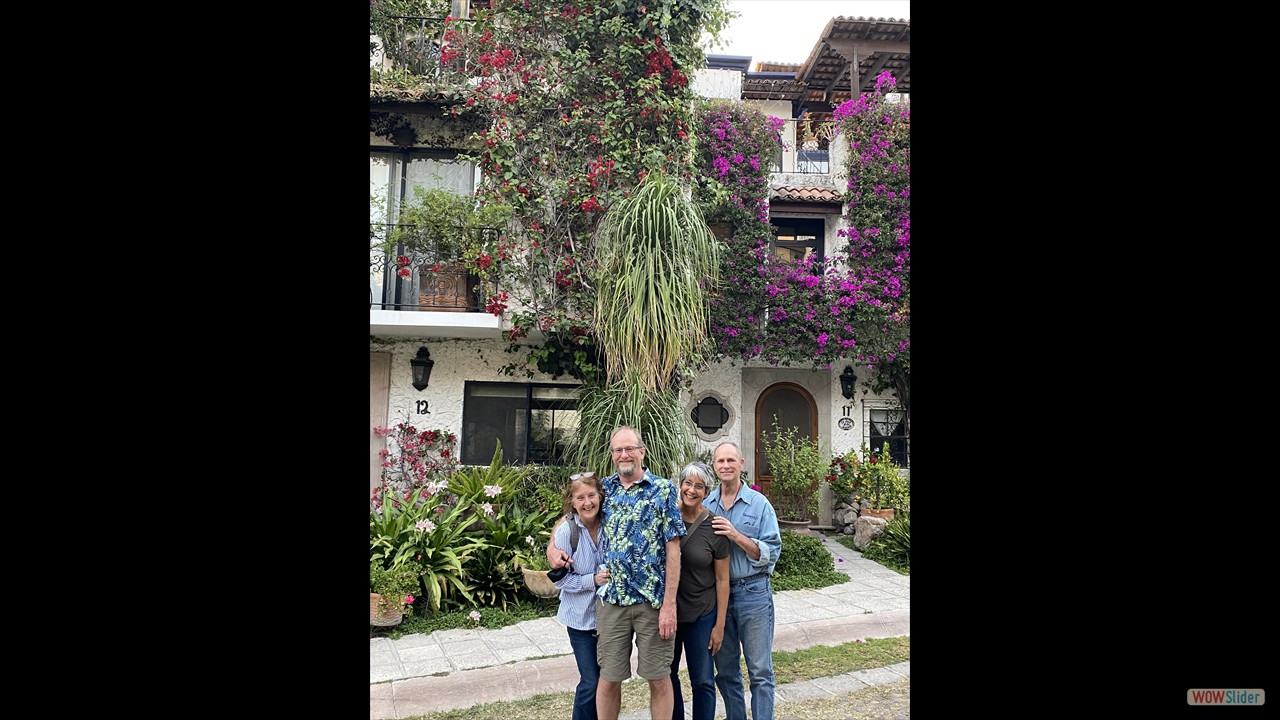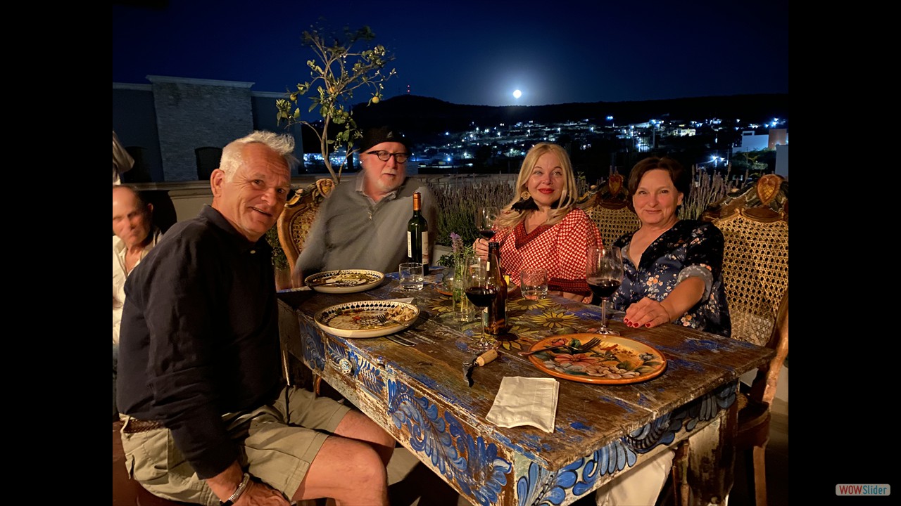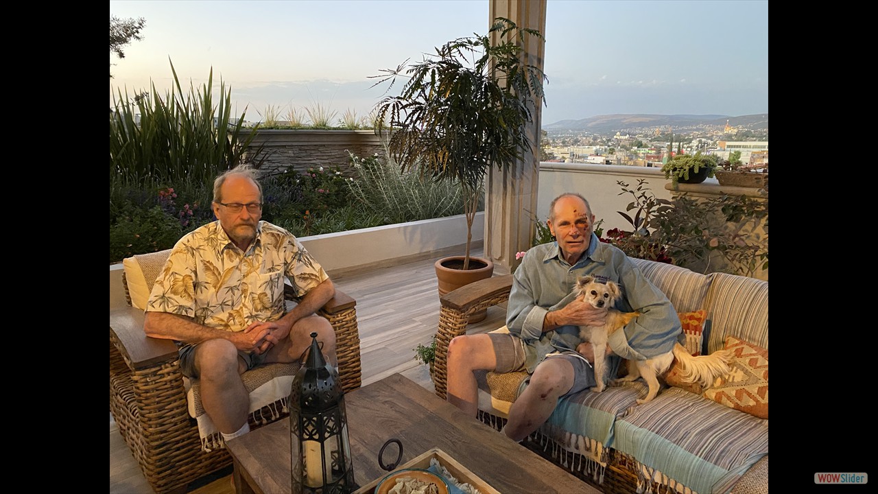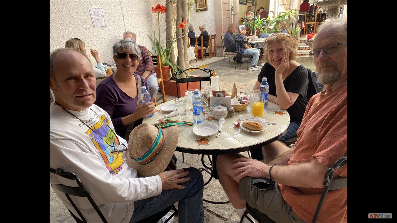My oldest and closest friends, Cal and David, came to visit us in San Miguel de Allende with their wifes, Mary and Terry. They were here for nearly a month and stayed near the Rosewood in Centro. We more than enjoyed their company and look forward to them coming back next year. Cal had a fall while descending one of the steep hills and had to seek medical care. He was a mess for a while but he really recovered quickly before he had to return home.