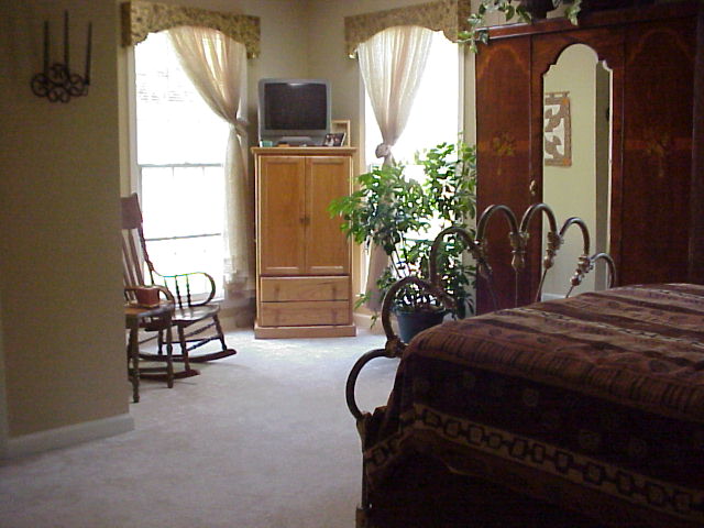 Three windows and skylight provide excellent light in the spacious master bedroom and sitting area |