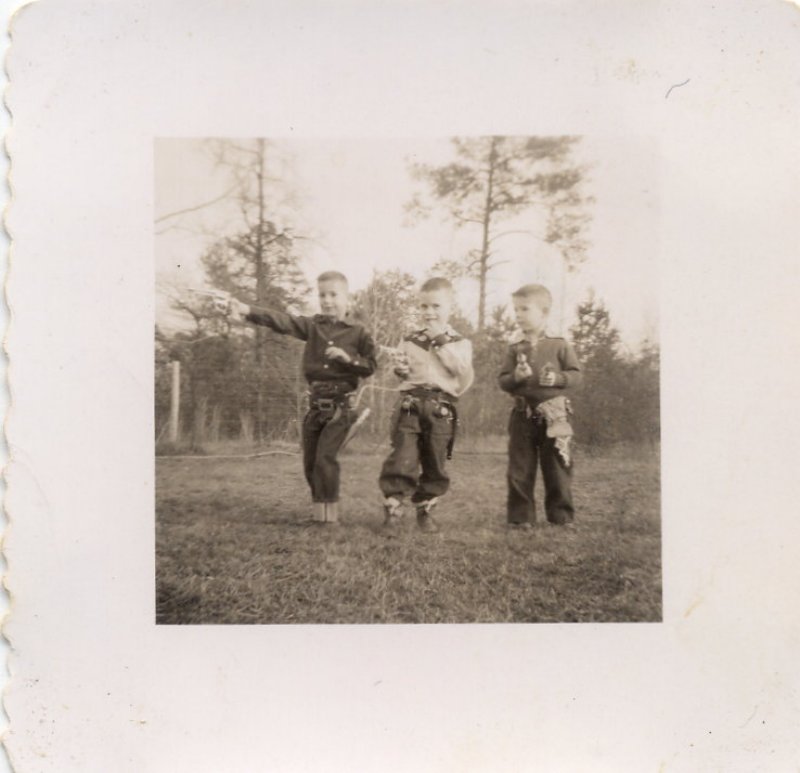 Cowboys playing in Granny and Granddad's back yard